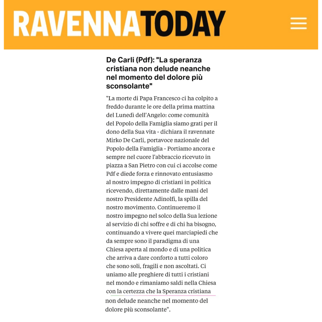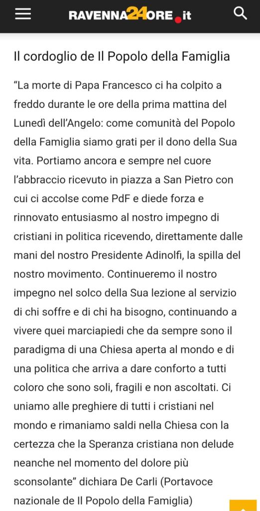 L’insegnamento di Papa Francesco apre le porte ad una stagione di forte ed atteso cambiamento, fuori e dentro la Chiesa. Per questo, come classe dirigente cristiana e cattolica, abbiamo il dovere di interpretarlo e governarlo nell’attesa del nuovo Vicario di Cristo