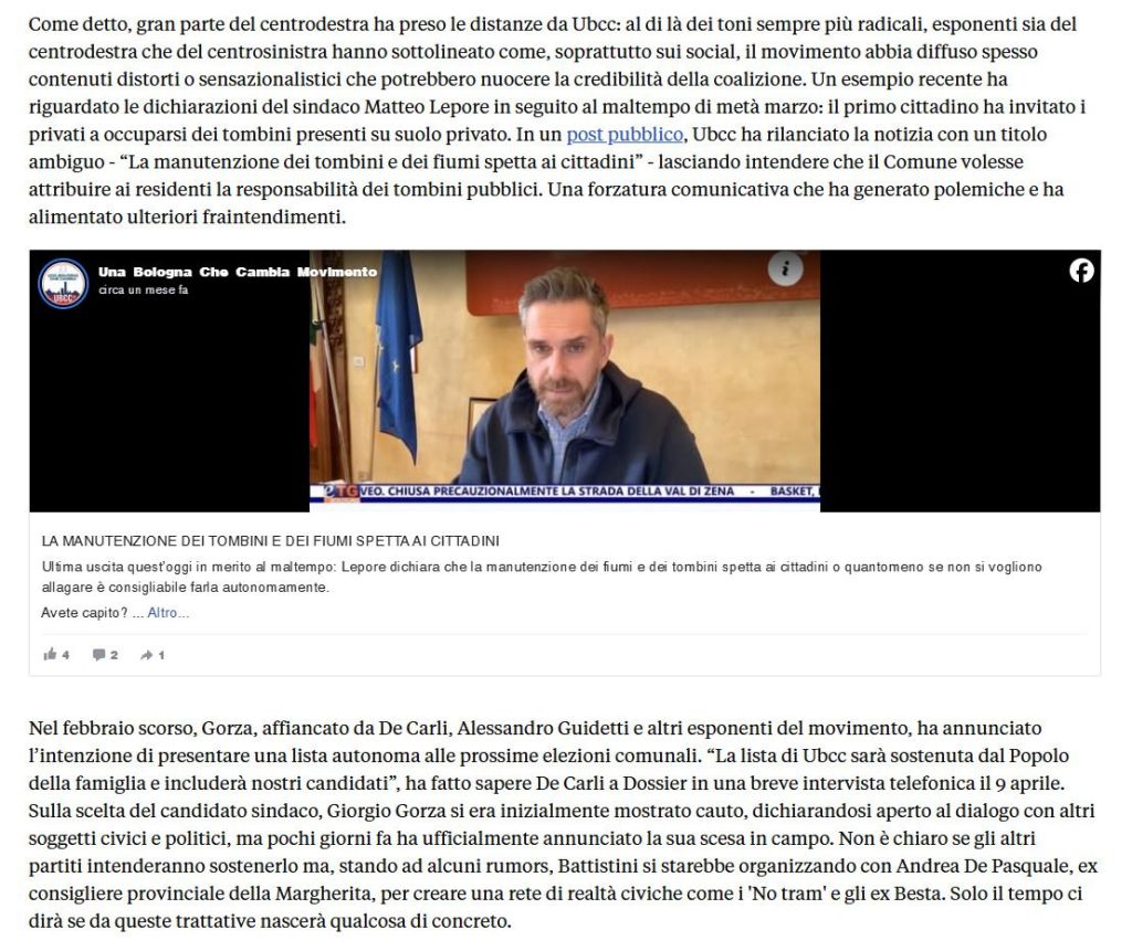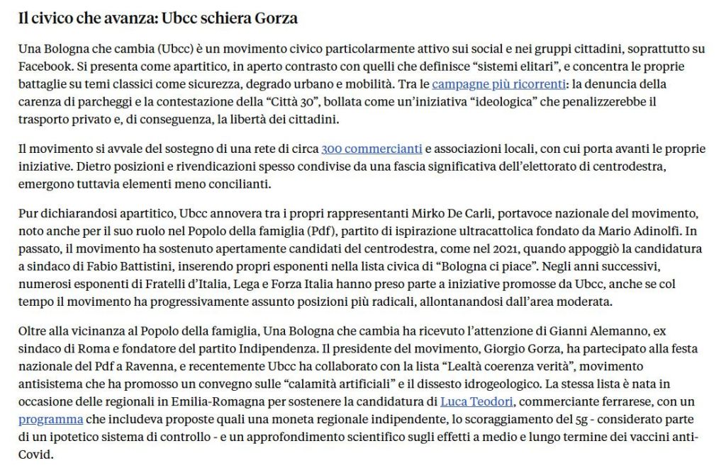 Un bel servizio di BolognaToday racconta il nostro cammino come Popolo della Famiglia Bologna e Una Bologna Che Cambia Movimento per Giorgio Gorza candidato sindaco e lo mette a confronto con gli altri schieramenti. Siamo la vera novità a Bologna perché, chi ci conosce lo sa, siamo sul territorio da anni e stiamo sui problemi e non campiamo di slogan. Prova ne sono le quasi 5.000 firme raccolte per la petizione sull’emergenza sicurezza a Bologna (https://www.ubcc.it/sicurezza/petizione-sulla-sicurezza-di-bologna/)
