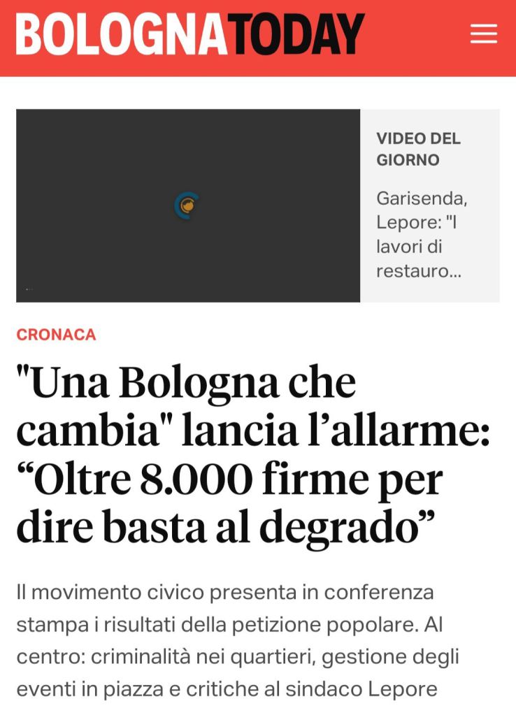 Il Popolo della Famiglia Bologna orgoglioso di aver contribuito alla mobilitazione di Una Bologna Che Cambia Movimento per portare oltre 8.300 firme di bolognesi all’attenzione del sindaco Lepore che denunciano l’emergenza sicurezza attraverso la nostra petizione. Serve un cambio di passo nell’azione di governo cittadino e serve adesso, le famiglie bolognesi non possono vivere la loro città in serenità e piena libertà