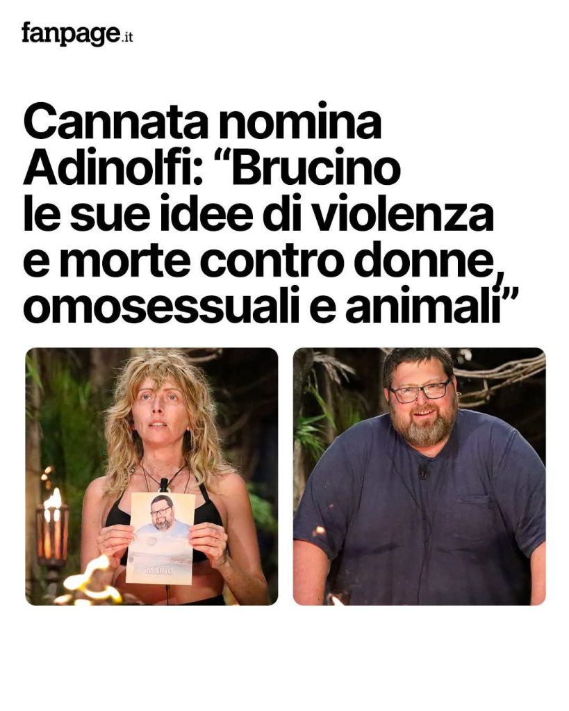 La violenza verbale della Cannata, concorrente a L’Isola dei Famosi, rivolta a Mario Adinolfi conferma le ragioni profonde della coraggiosa scelta che ha spinto il mio amico Mario a prendere parte a questa edizione del reality show di Canale 5: rendere palese ed evidente che, per certe (troppe) persone del mondo dello spettacolo (e non solo) le nostre idee, i nostri valori e le nostre battaglie non hanno diritto di cittadinanza e per questo meritano letteralmente il rogo. A chi mi ha detto che Mario non doveva andare in Honduras, a chi mi ha posto questioni più moraliste che morali sull’opportunità di lasciare la Presidenza del Popolo della Famiglia e vivere appieno questa avventura umana prima ancora che televisiva, rispondo con le parole con cui la Cannata ha nominato al televoto Mario: se non sono sufficientemente chiare non so davvero cosa si potrebbe aggiungere. È dunque fondamentale che tutti gli amici che in questi anni ci hanno seguito ci mettano ancora la faccia e diano sostegno a questa nuova battaglia seguendola mettendo mi piace alla pagina Mario Adinolfi all’ISOLA DEI Famosi 2025. Il primo televoto lo abbiamo vinto, ora non siamo al televoto dopo la seconda puntata: si può vincere, ancora una volta insieme