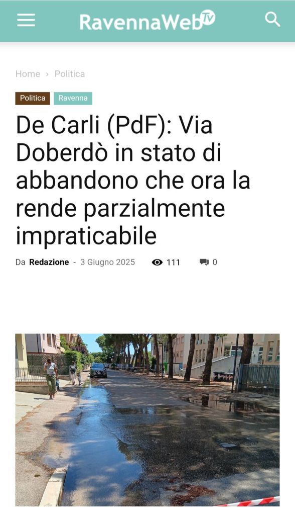 La situazione di Via Doberdò a Ravenna è lo specchio di una città feriti da uno stato di abbandono e degrado diffuso. Come Lega-Pdf-LpRa ribadiamo l’urgenza di un piano straordinario di manutenzione stradale. È una priorità improrogabile