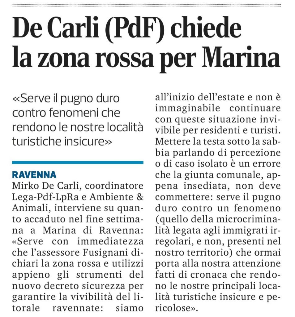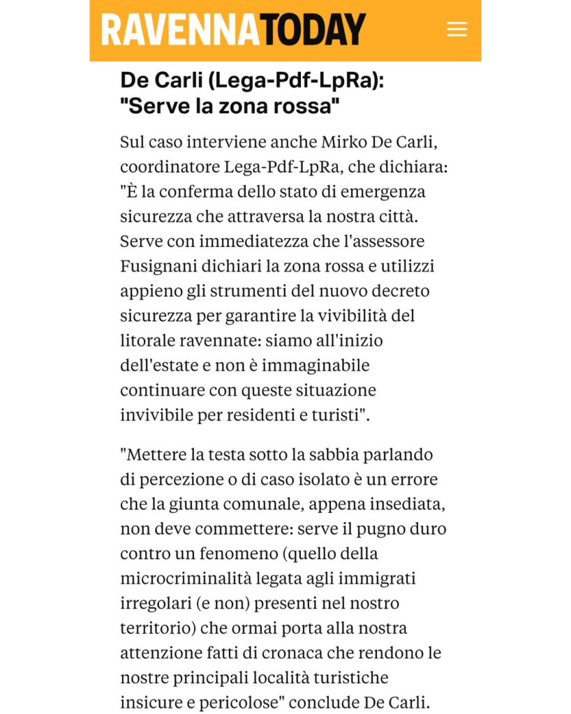 Il litorale ravennate è, da troppo tempo, in balia di fenomeni sociali preoccupanti come la microcriminalità, il degrado e la violenza (anche contro le forze dell’ordine, alle quale rivolgiamo la nostra massima solidarietà). Per questo chiediamo all’assessore Fusignani di dichiarare, di concerto con il Governo, le aree più esposte del nostro litorale “zona rossa”. Serve il punto di ferro per garantire, ai turisti e residenti, un’estate all’altezza delle aspettative #sicurezza #migranti #rivieraromagnola #turismoitalia #poliziadistato
